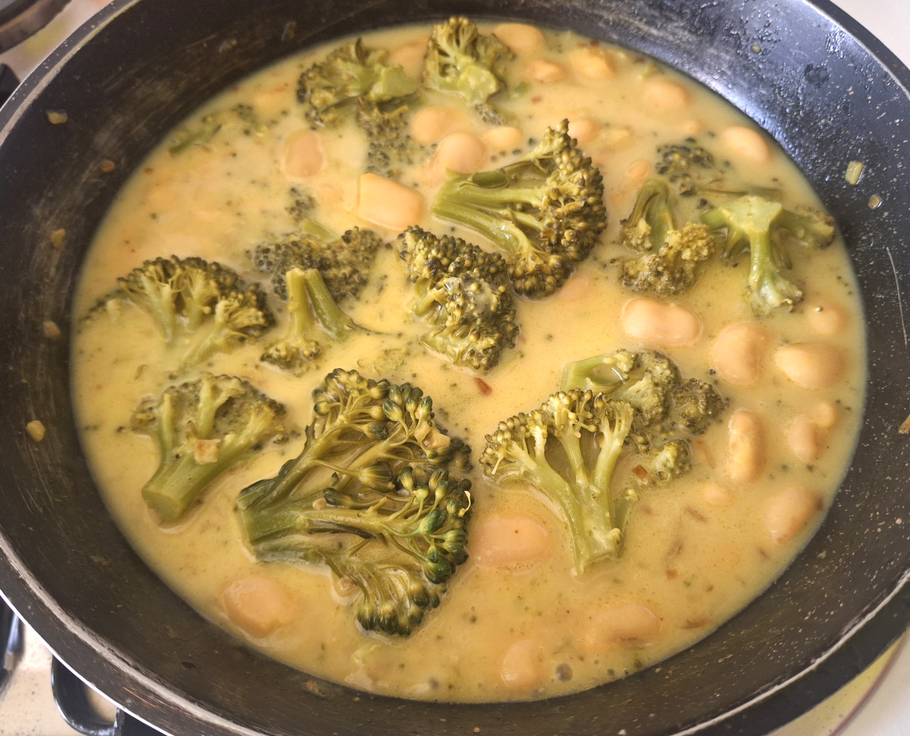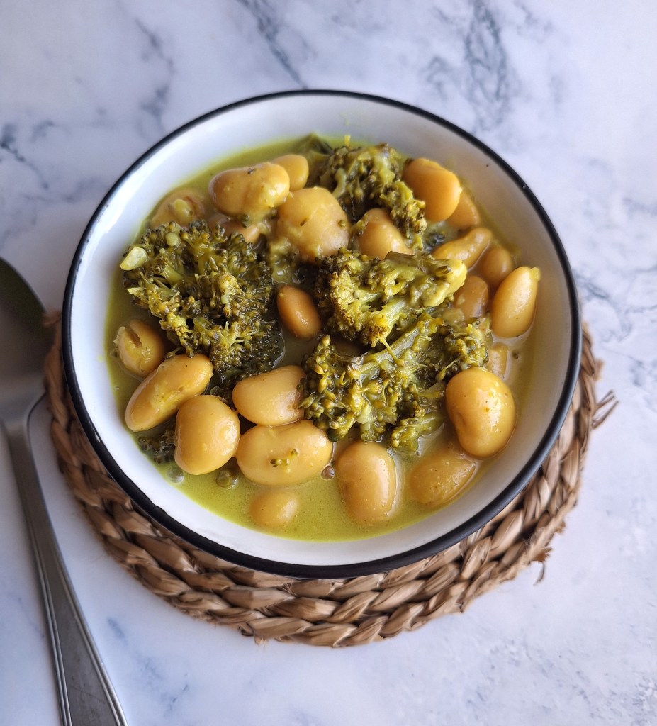 !Buenas noches corazones! Después de un fin de semana de excesos dulces (y no tan dulces), debido al cumple de la mamma, toca volver a la normalidad. Y, viniendo de mí, tenía que ser un plato de cuchareo con legumbres y verduras. En esta ocasión volví a utilizar alubias, que parece que últimamente me estoy aficionando, y brócoli. Hace una semana me trajo unas cabecillas de brócoli del huerto, que eran poquitas y bastante pequeñas, así que decidí combinarlas con las alubias y darle un toque especial con un nata y curry. Queda un plato muy sabroso y con una textura muy cremosa que seguro os va a encantar. Al menos a mí, me ha encantado.
