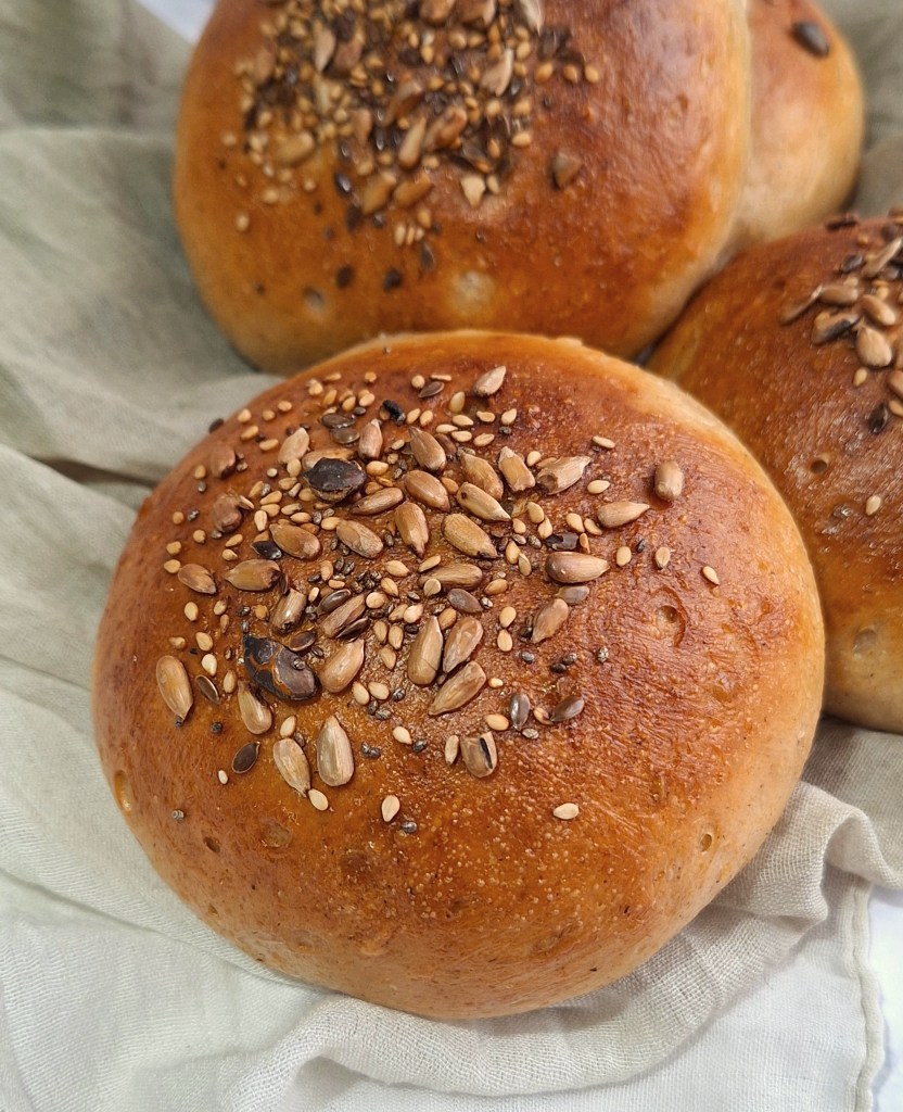 Este pan tiene una miga tierna y esponjosa, es perfecto para acompañar vuestras hamburguesas. Lo podéis congelar sin problema y, cuando lo queráis utilizar, sólo tenéis que darle un golpe de micro y listo. Os aseguro que queda estupendo. No puedo compartir el vídeo, pero si os pasáis por mi perfil de IG podréis ver lo maravilloso que queda. Espero que os guste.