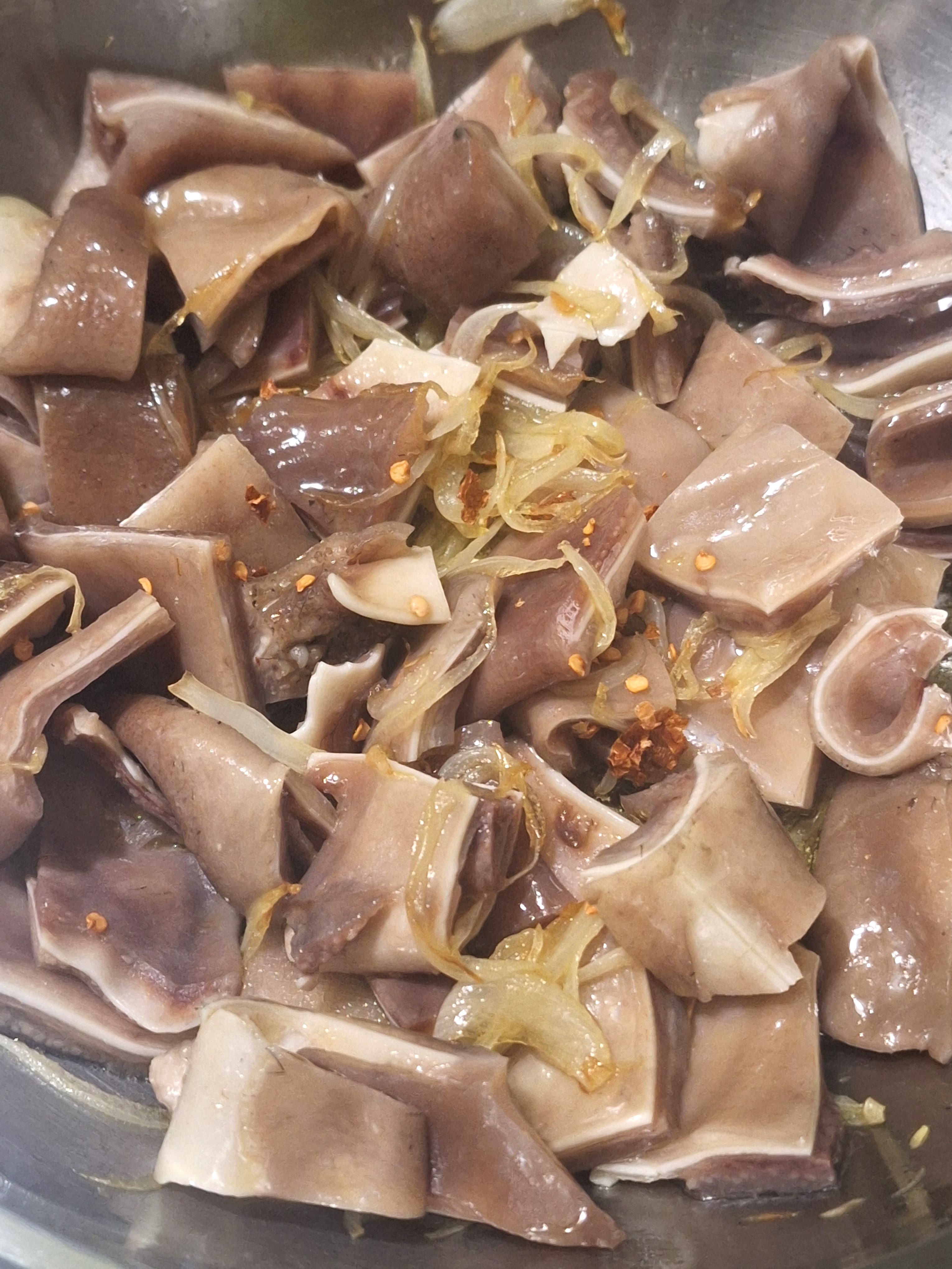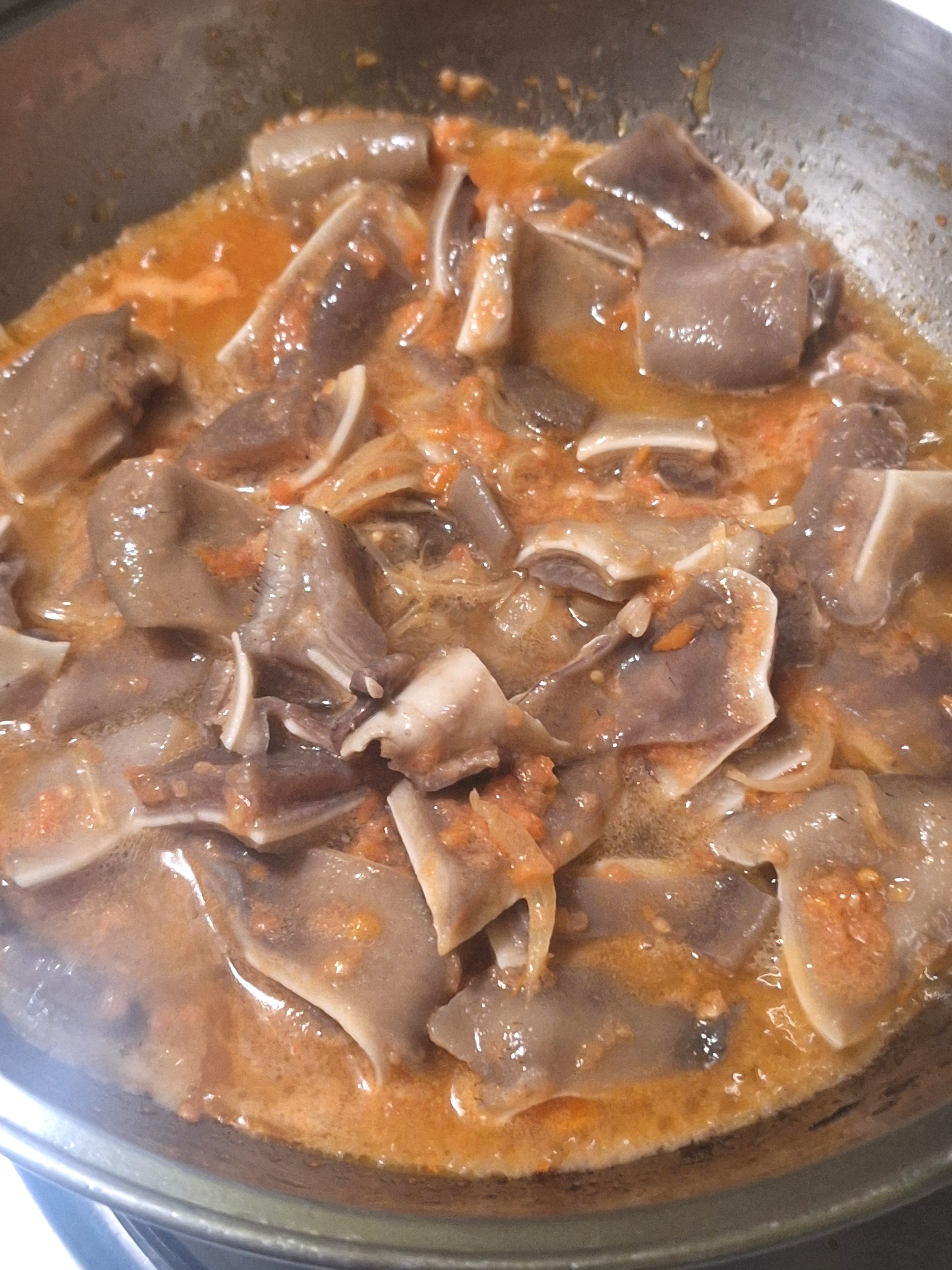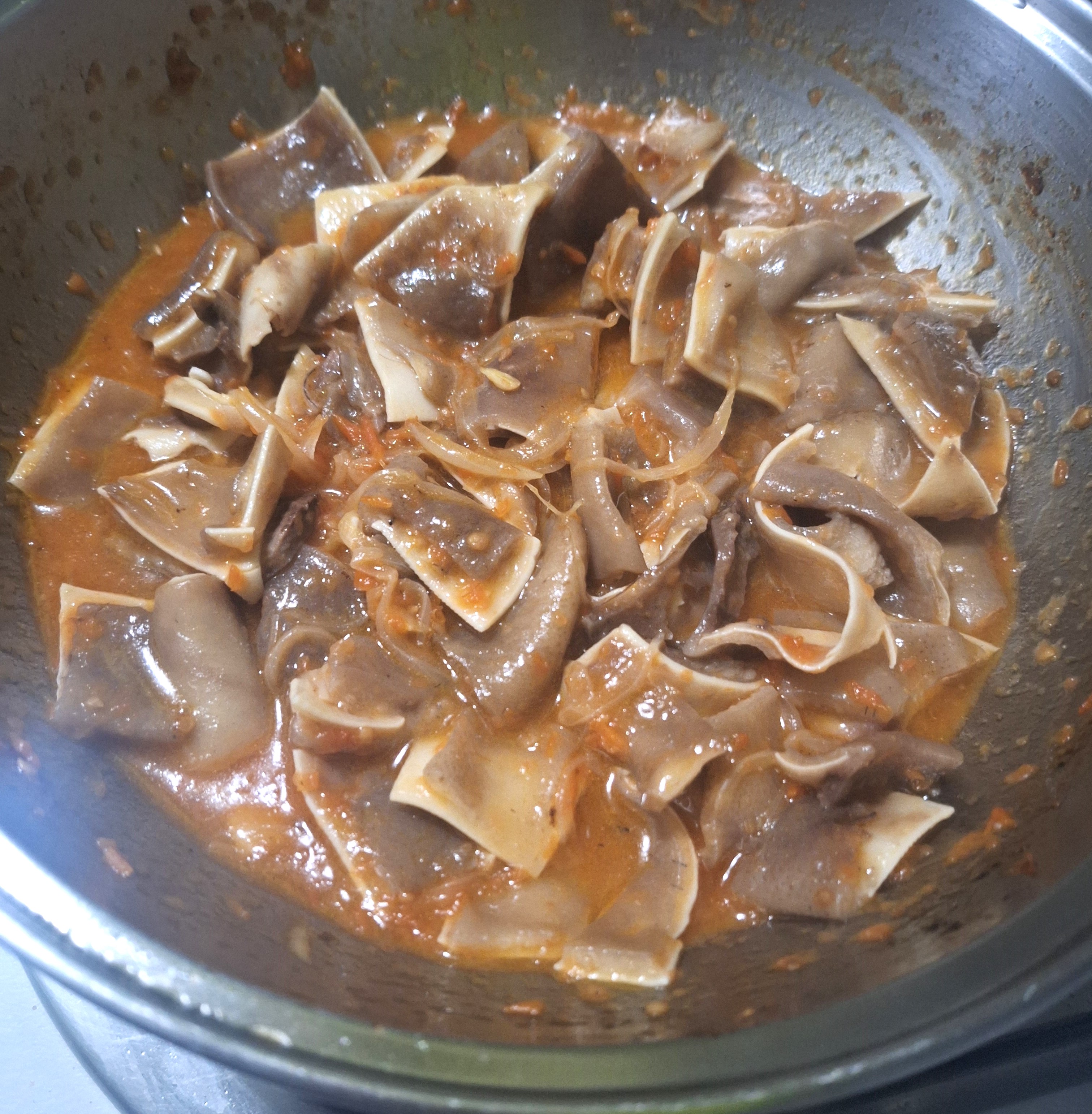 No soy mucho de casquería, pero he de reconocer que me encanta el morro, la oreja y las patitas de cerdo (no se puede ser perfecta en esta vida…). Mi madre suele hacer la oreja y las patas casi de la misma forma, aunque más la oreja. Primero la cuece para que quede tierna y luego la cocina con una salsa de cebolla, tomate y ajo (he prescindido del ajo porque no puedo tomarlo), un chorrito de vino y un poquito de cayena. El toque picante es opcional, pero es lo mejor del plato para mi gusto.