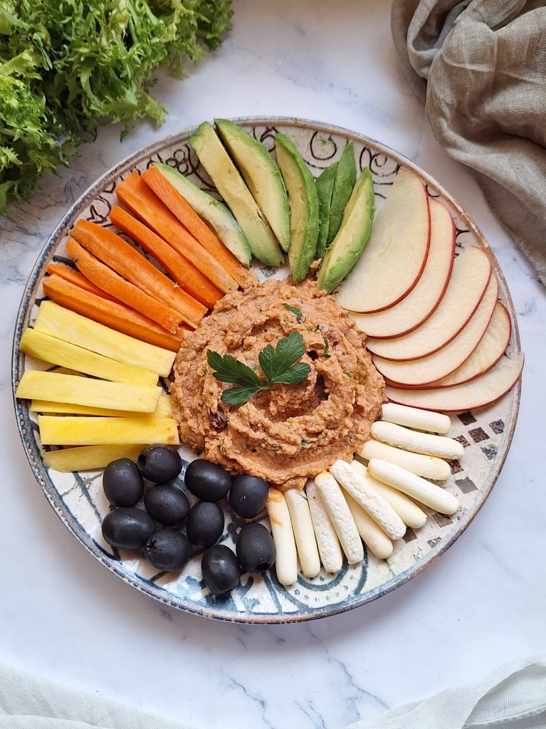 !Buenos días corazones! El domingo compartí una receta de hummus de tomate seco con crudités y hoy te la traigo de nuevo, esta vez sin florituras (bueno sí, las típicas para decorar y que a mí me gustan tanto).