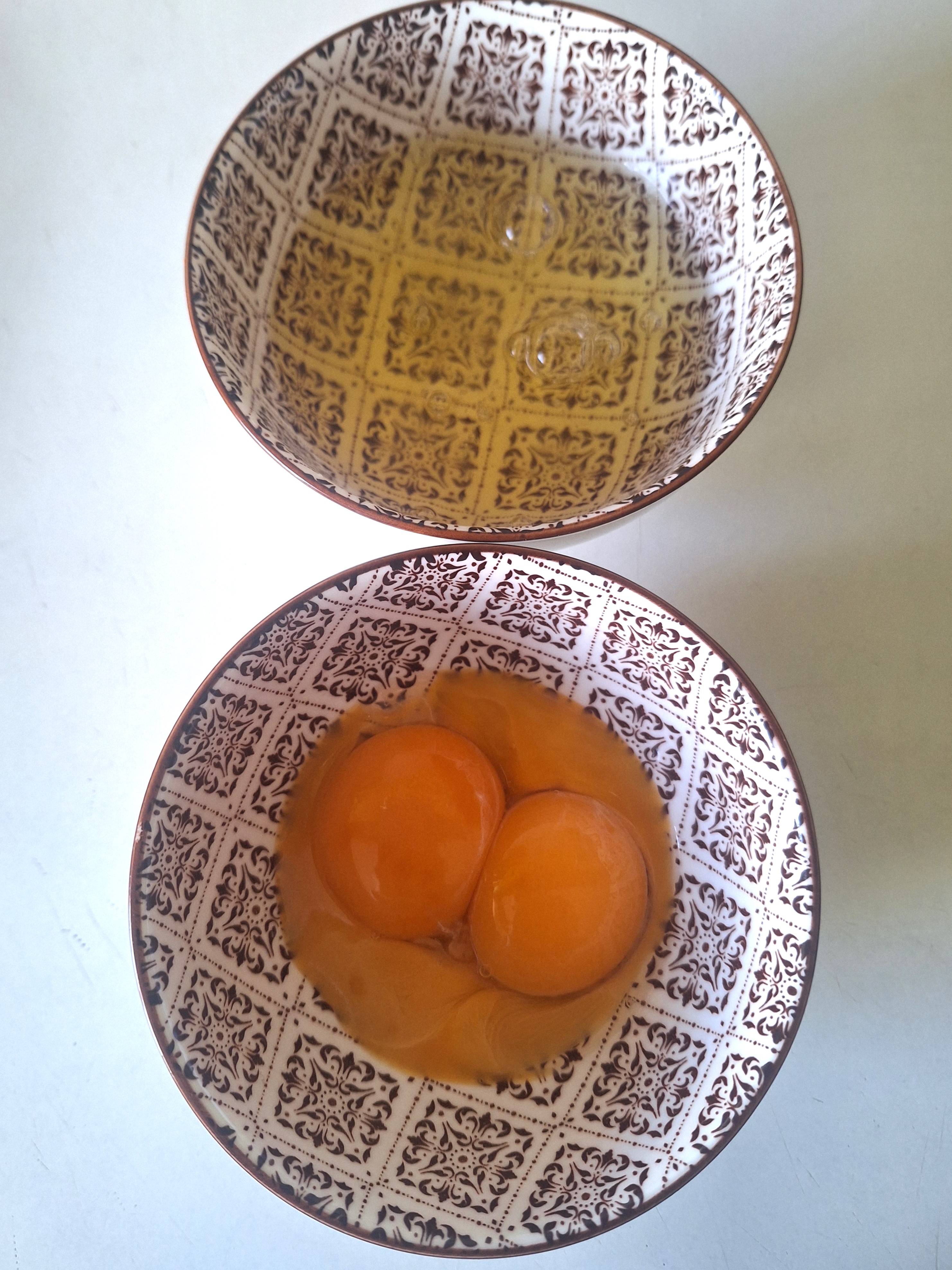 Por otra parte blanquea las yemas con la otra mitad del azúcar (en 2-3 tandas). Sigue batiendo e incorporando el azúcar hasta que tenga una textura blanquecina.