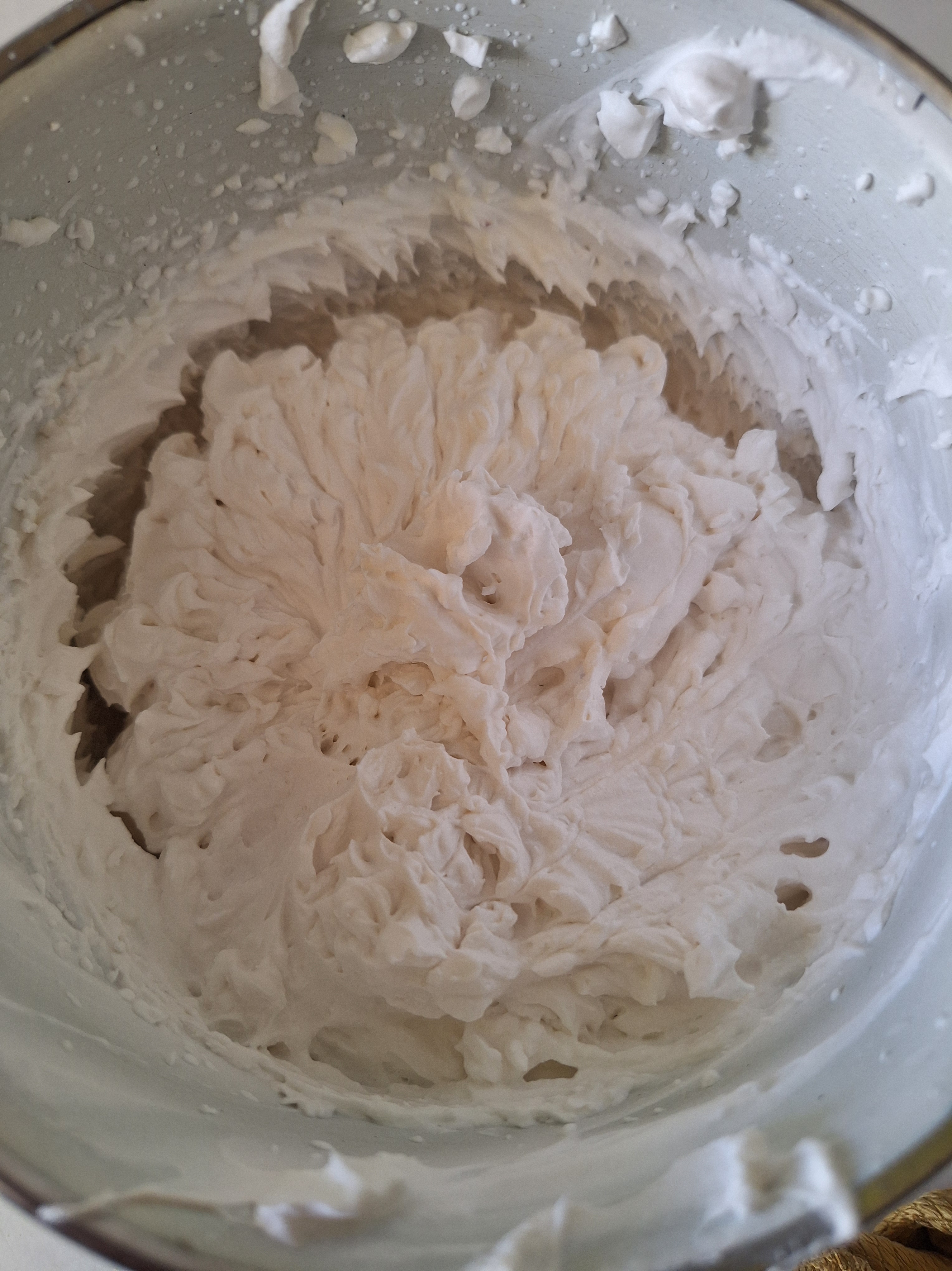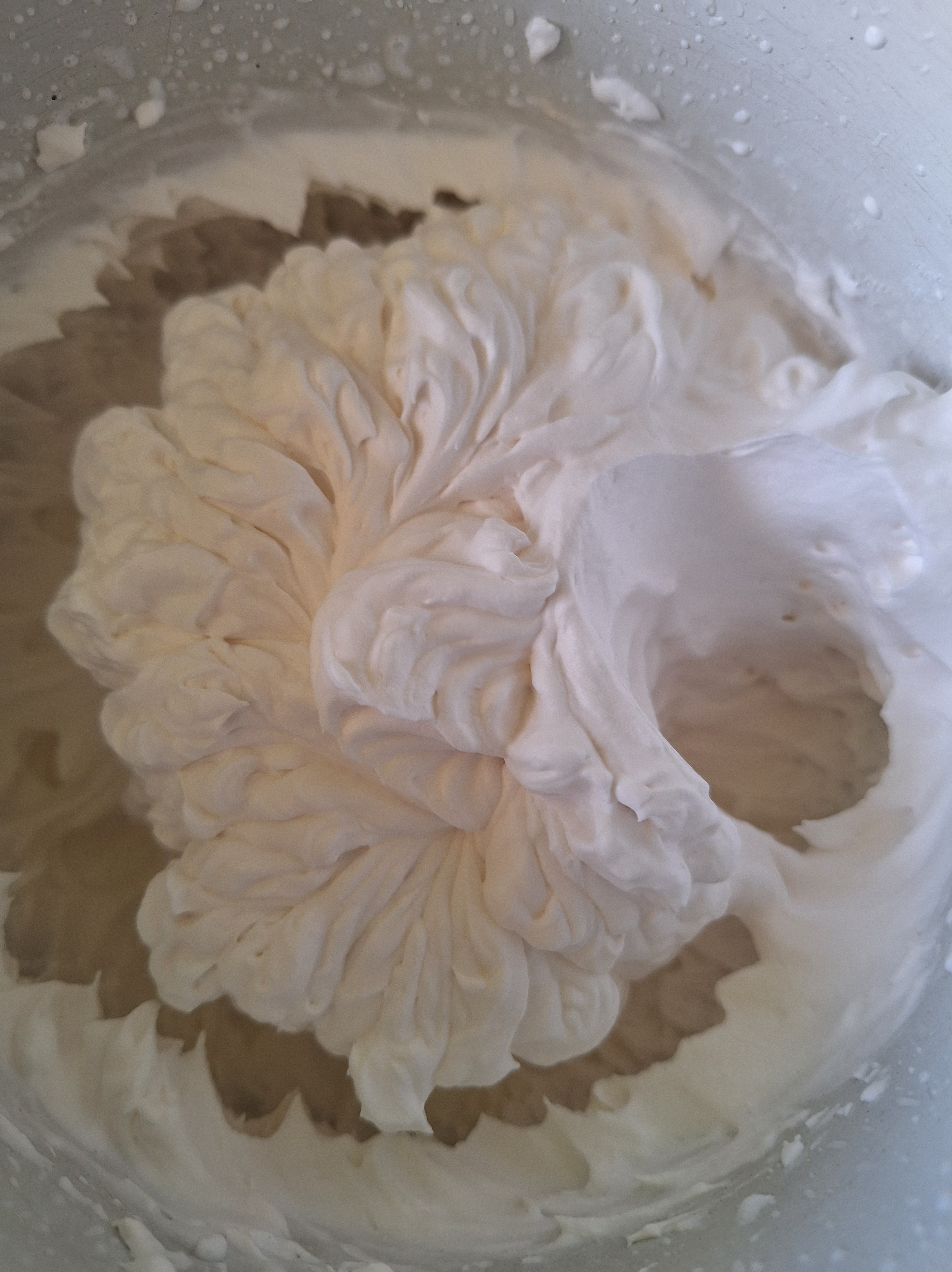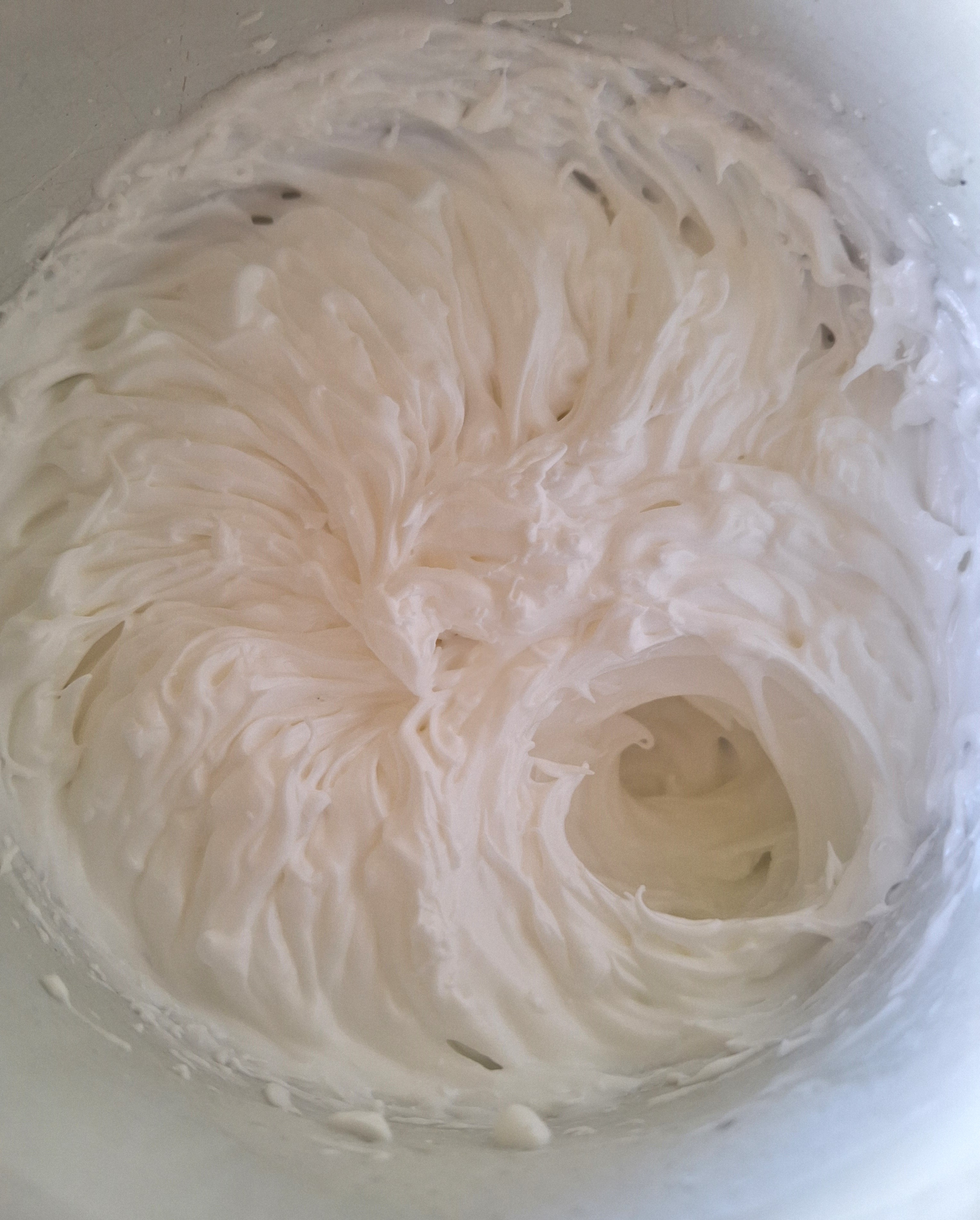 En cuanto al relleno, he seguido la misma receta que para el Pastel Victoria, combinando leche de coco (la de lata y sólo la parte sólida) y nata vegetal. Es la única forma en la que me queda un relleno consistente y capaz de resistir el peso del bizcocho. En esta ocasión he reducido un poco la cantidad de nata porque lleva puré de arándanos y no quería que quedara demasiado líquida. Es posible que al utilizar la crema de coco y nata se obstruya la boquilla de vuestra manga, ya que el coco solidifica en frío. Podéis darle un golpe con varillas antes del uso y hacerla más ligera (pero no os paséis).