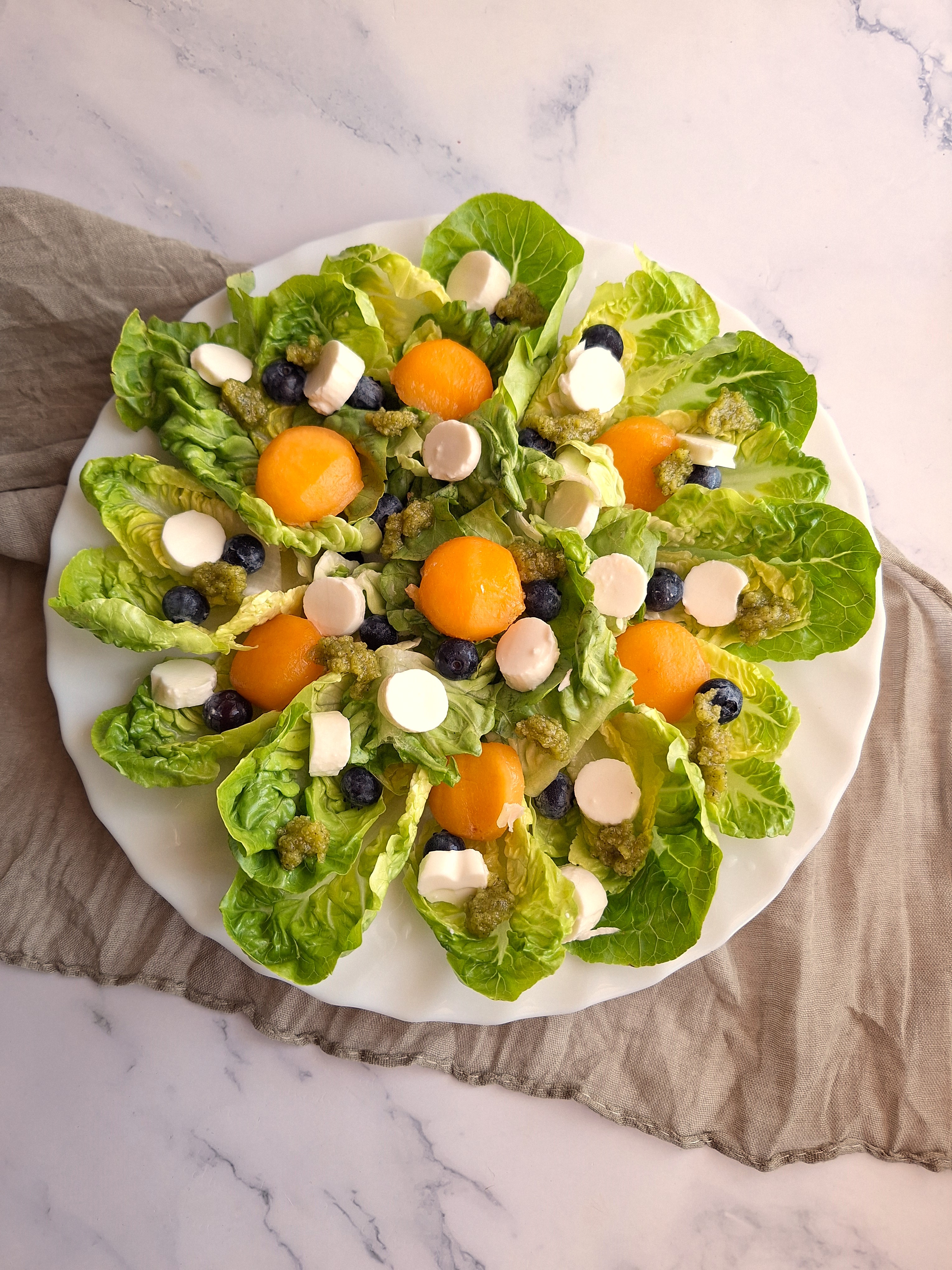 • Ensalada de cogollos, melocotón y queso fresco.