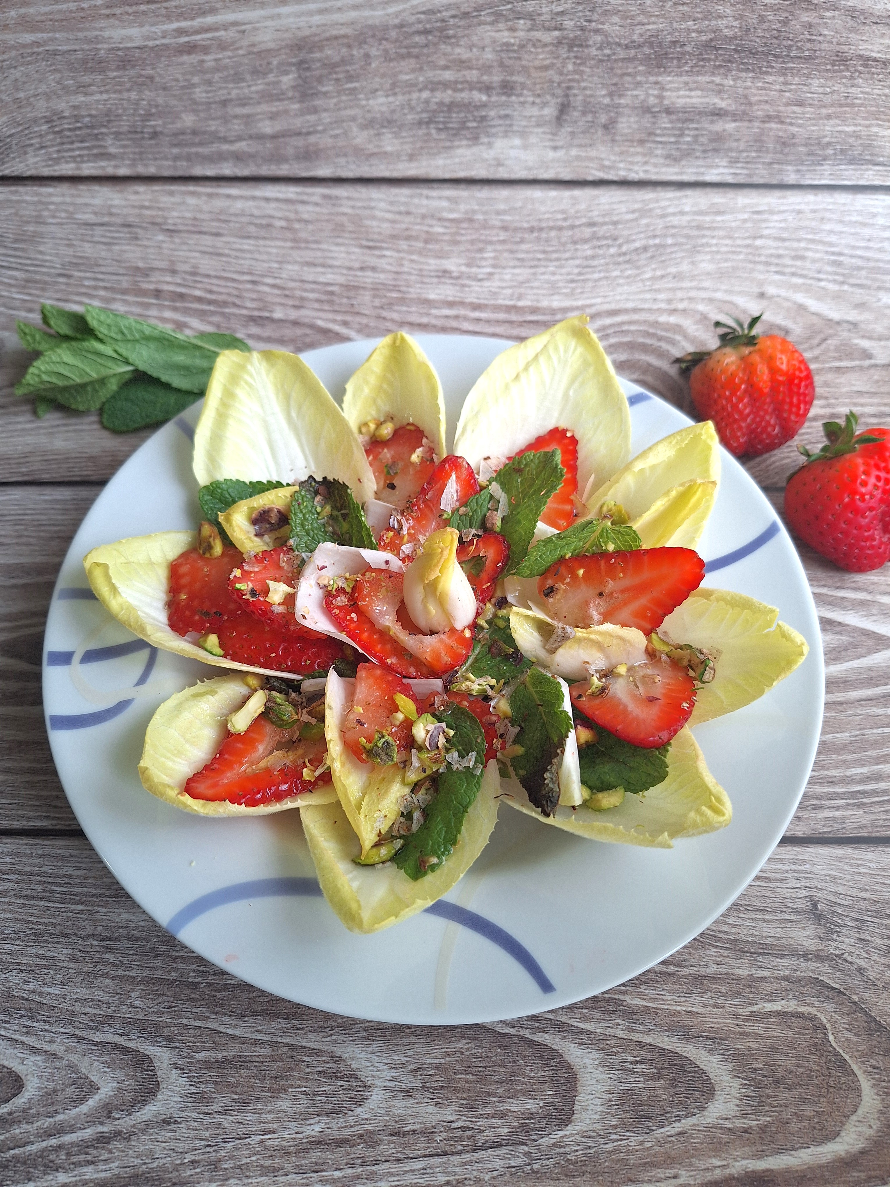 • Ensalada de endivias, fresas y hierbabuena.