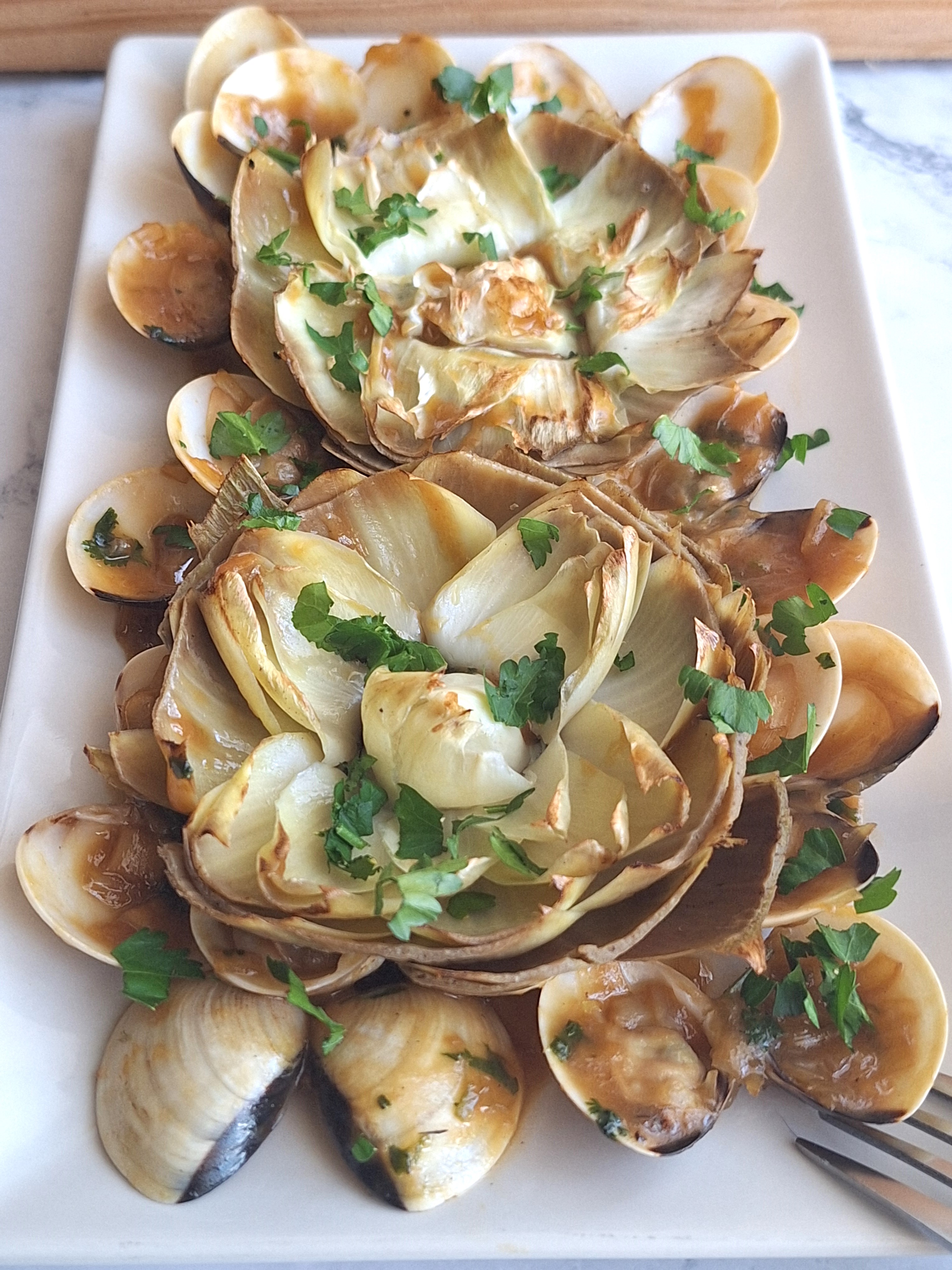 • Flores de alcachofa con almejas.