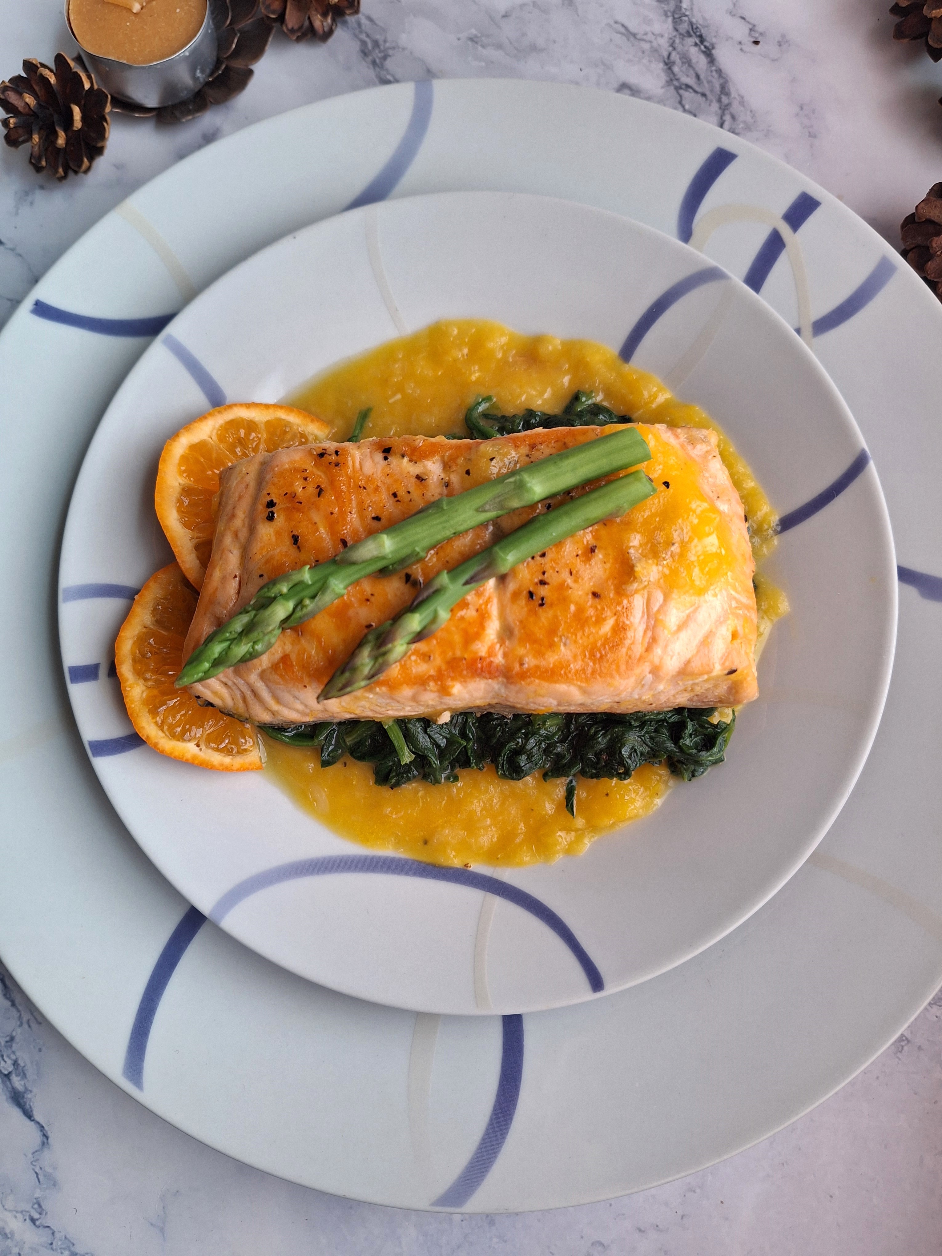 • Salmón en salsa de mandarina.
