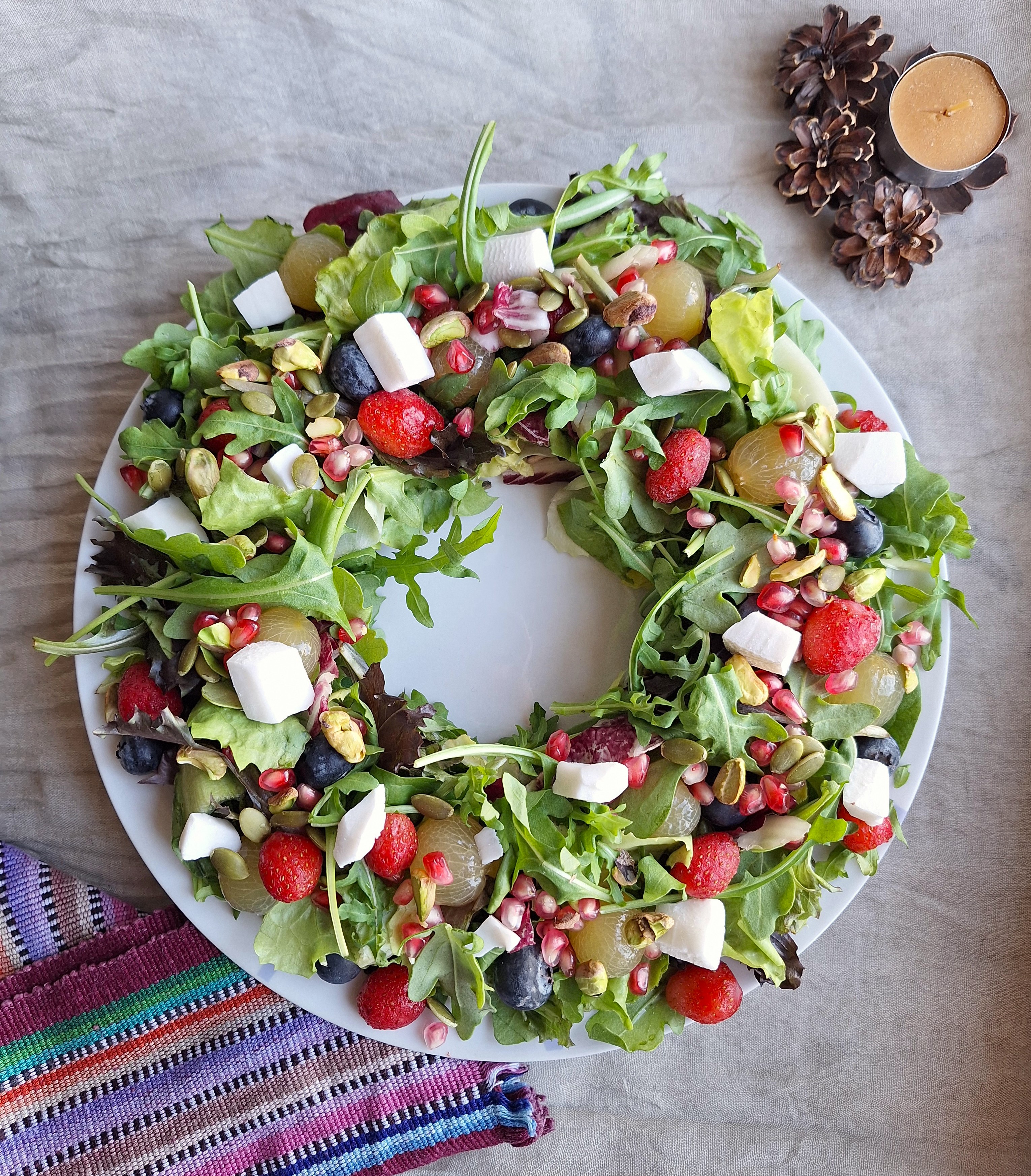 • Corona navideña de rúcula y mezclum.