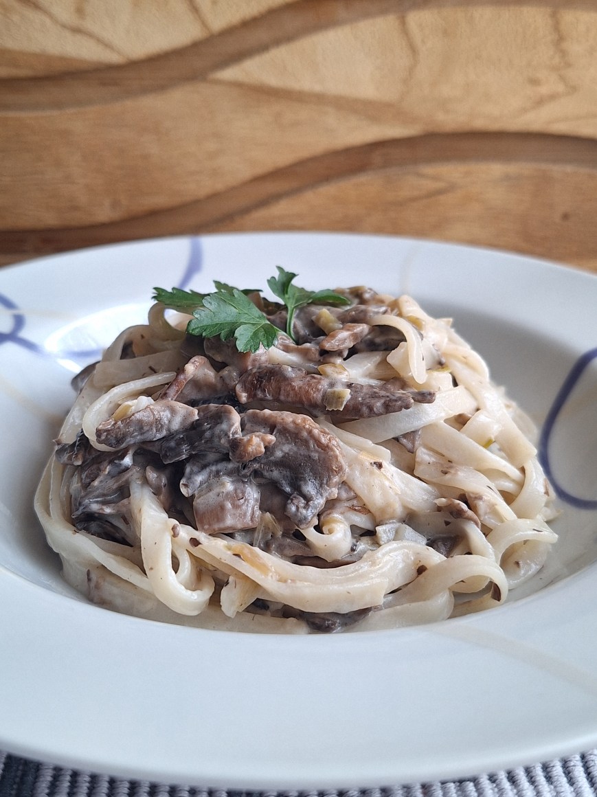• Tallarines de arroz con portobellos.