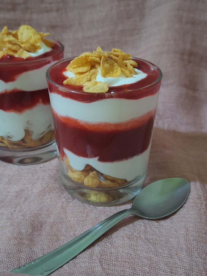 • Vasitos de cereal, nata y frambuesas.