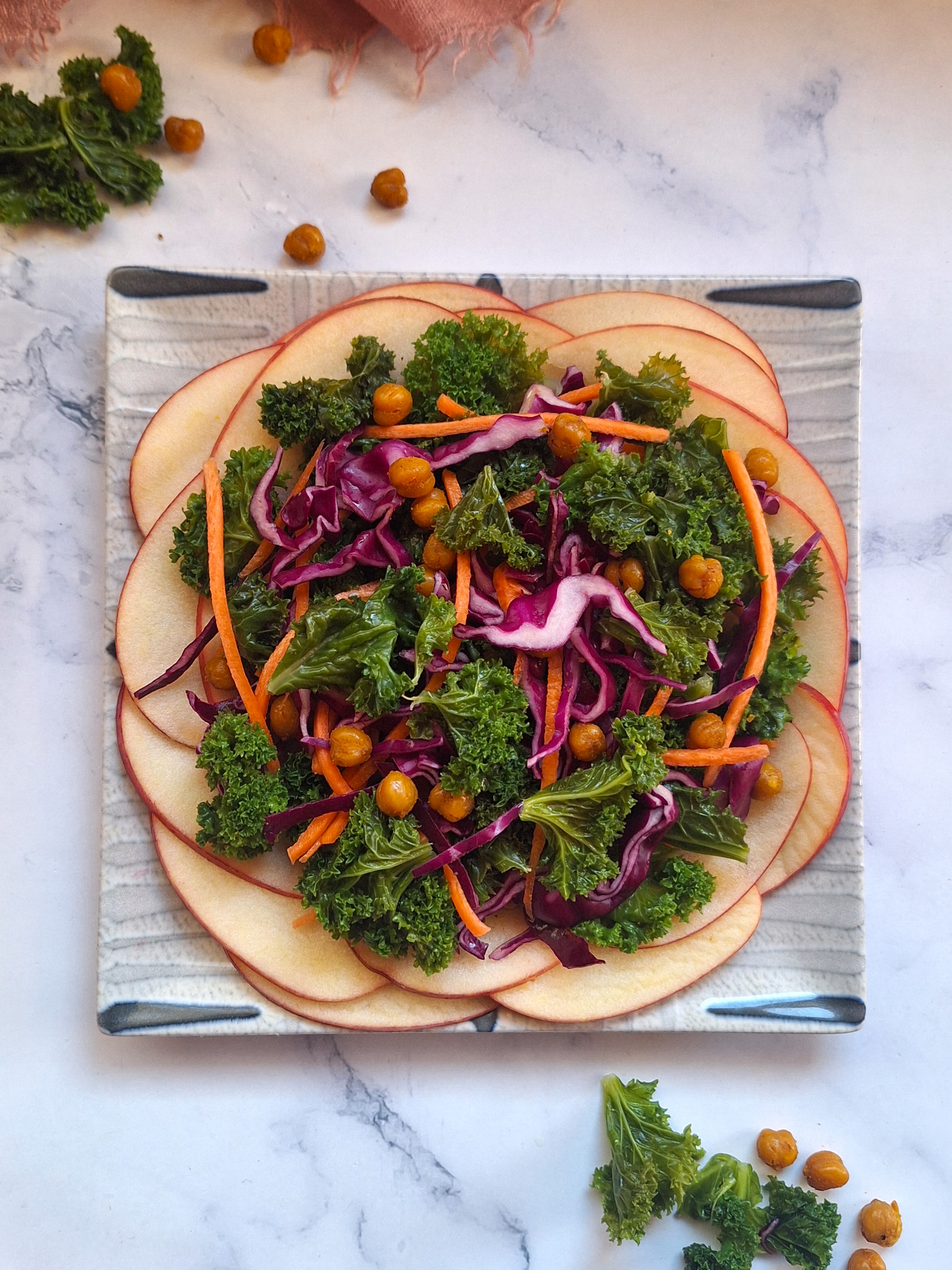 • Ensalada de kale, lombarda, zanahoria y manzana.