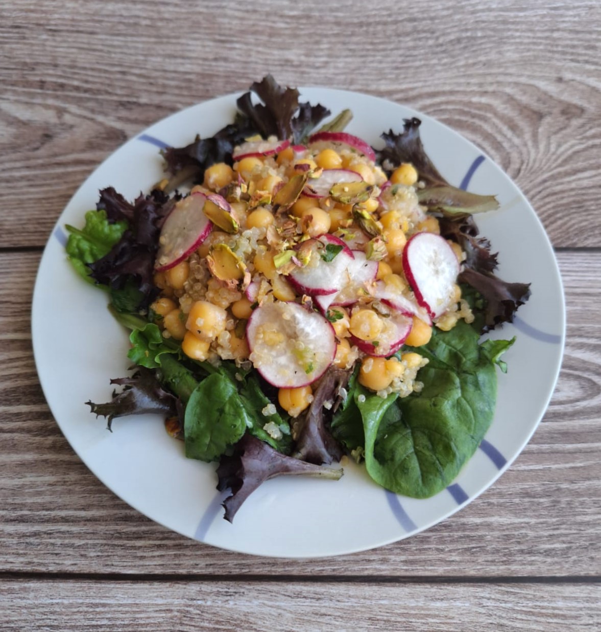 • Ensalada de garbanzos, quinoa y rabanitos.
