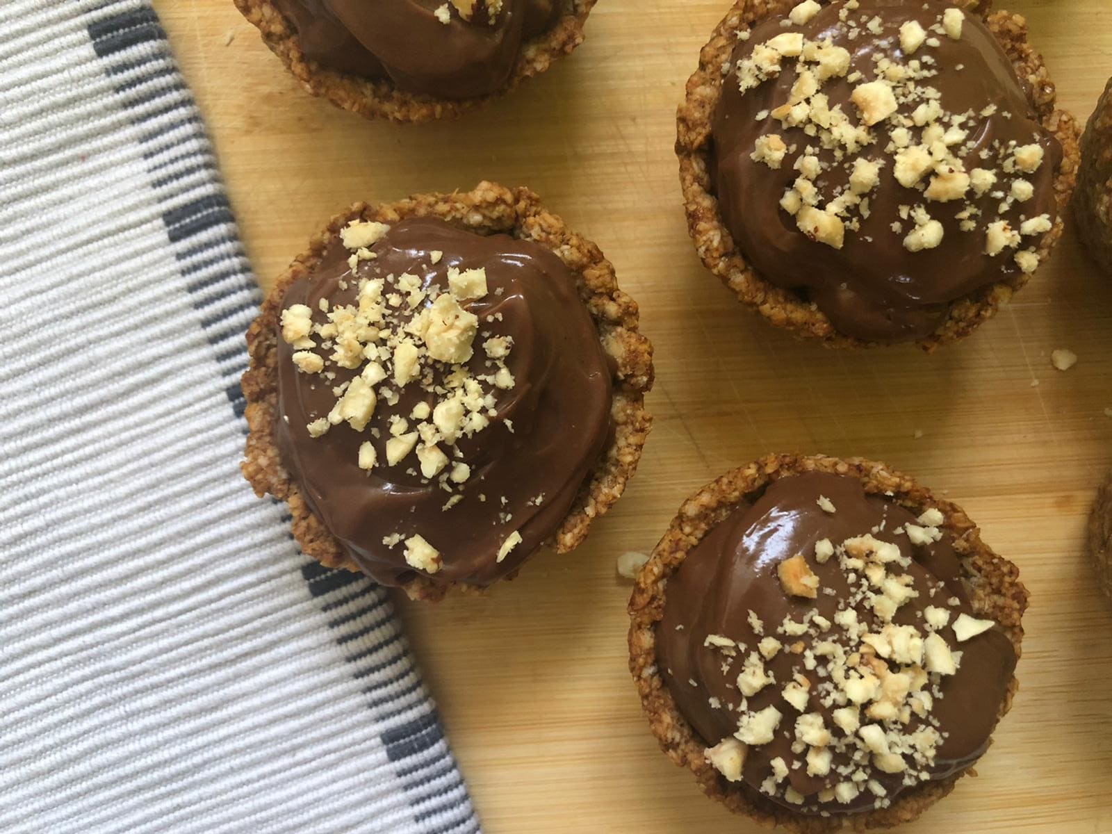 • Cestitas de avena y plátano con crema pastelera de chocolate.