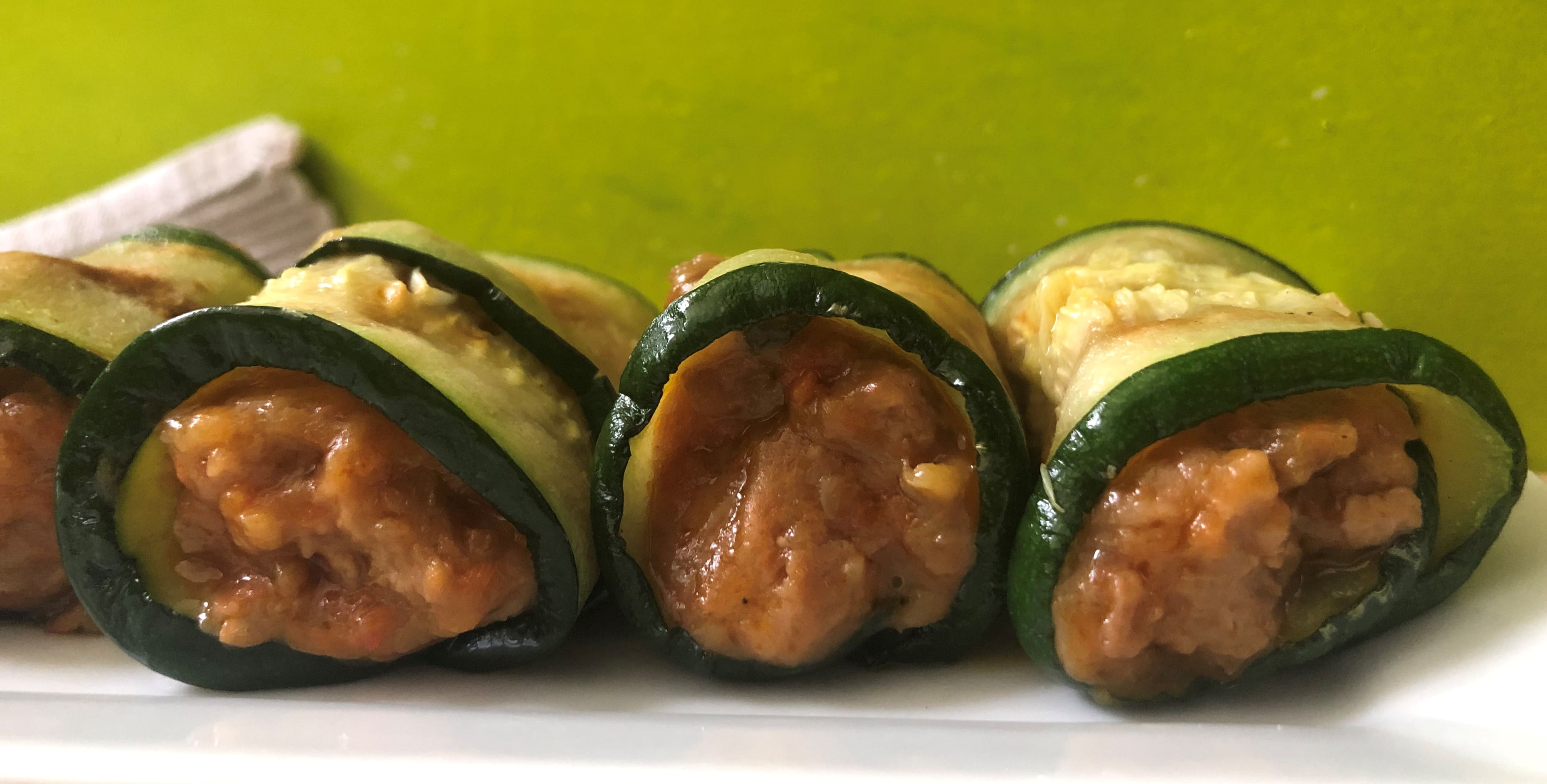 • Canelones de calabacín rellenos de soja.