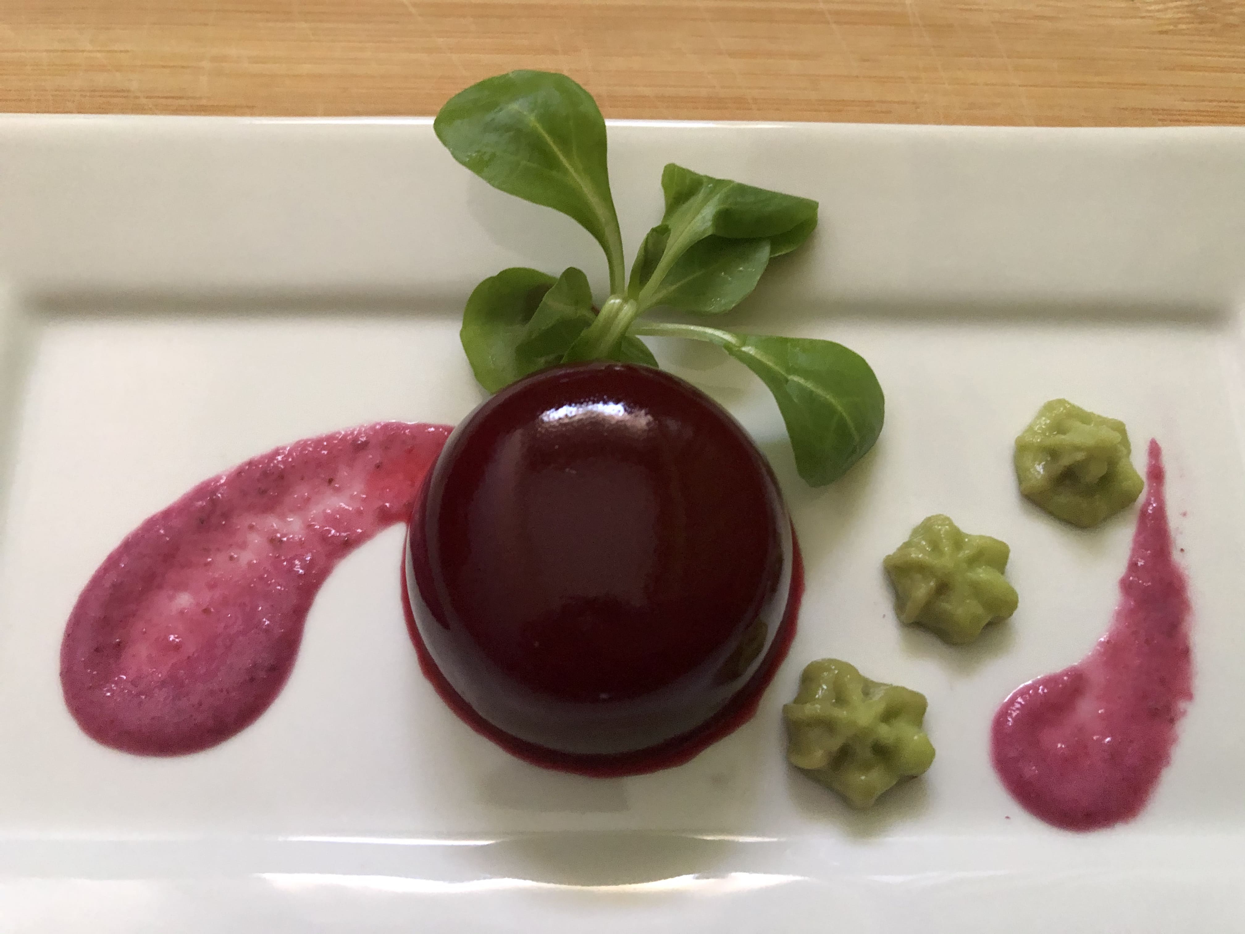 • Gelatina de remolacha y manzana con yogur y aguacate.