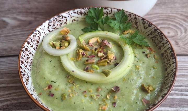 Vegana y sin gluten Continúa leyendo Crema fría de calabacín, pera y aguacate.