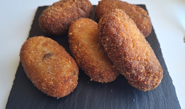 Croquetas de berenjena y setas de ostra.