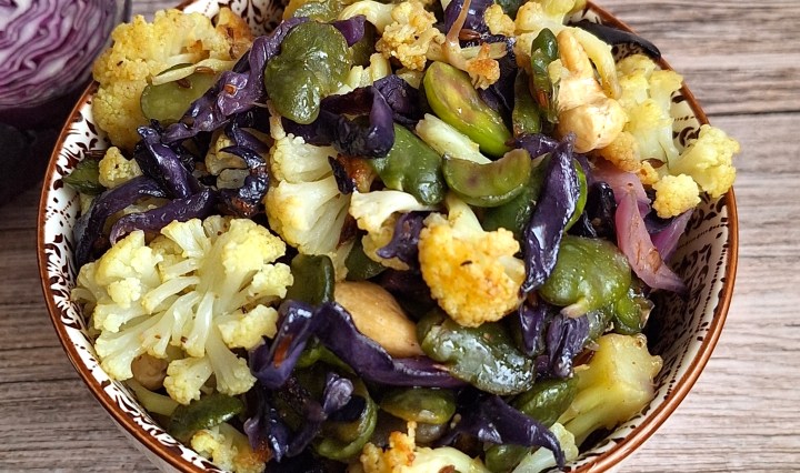 Vegana, sin gluten, frutos secos Continúa leyendo Salteado de coliflor, lombarda y habas.