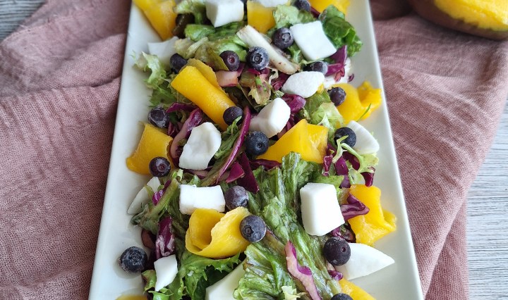 Ensalada mezclum de mango y coco.