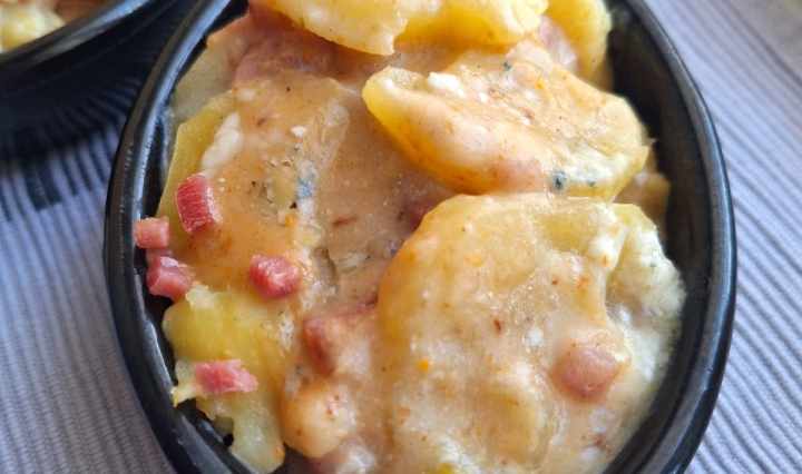Patatas con bechamel, jamón y queso azul Continúa leyendo Patatas con bechamel, jamón y queso azul.